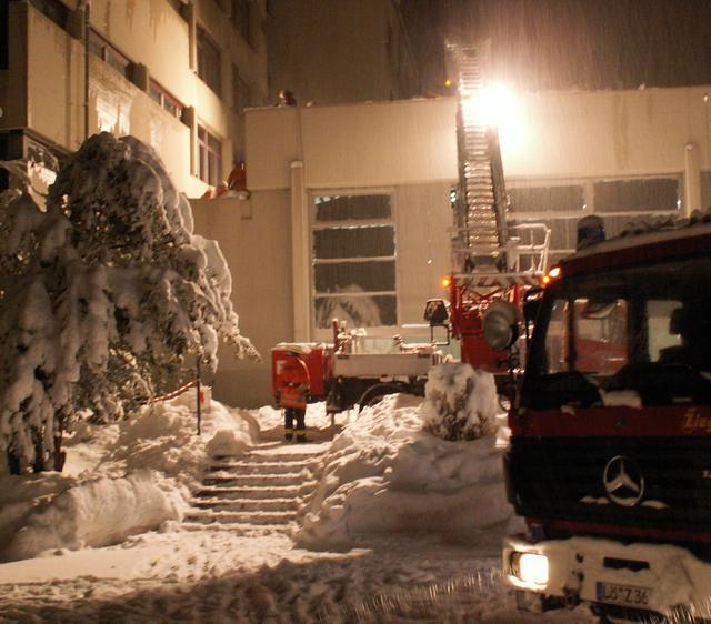 Dach der Stadthalle von Schnee befreien